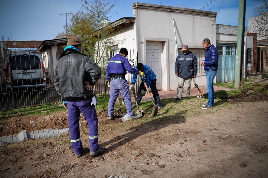 Junto al aporte del personal están realizando profundización de desagües y colocación de tubos en los desagües pluviales de las calles Mozotegui, Paso y Antártida Argentina.